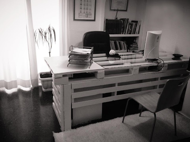 Siendo consecuentes con nuestras ideas, buscando algo económico y usando solo materiales reciclados, nos propusimos el diseño y montaje de esta pieza para nuestro estudio con palés recogidos de la calle.